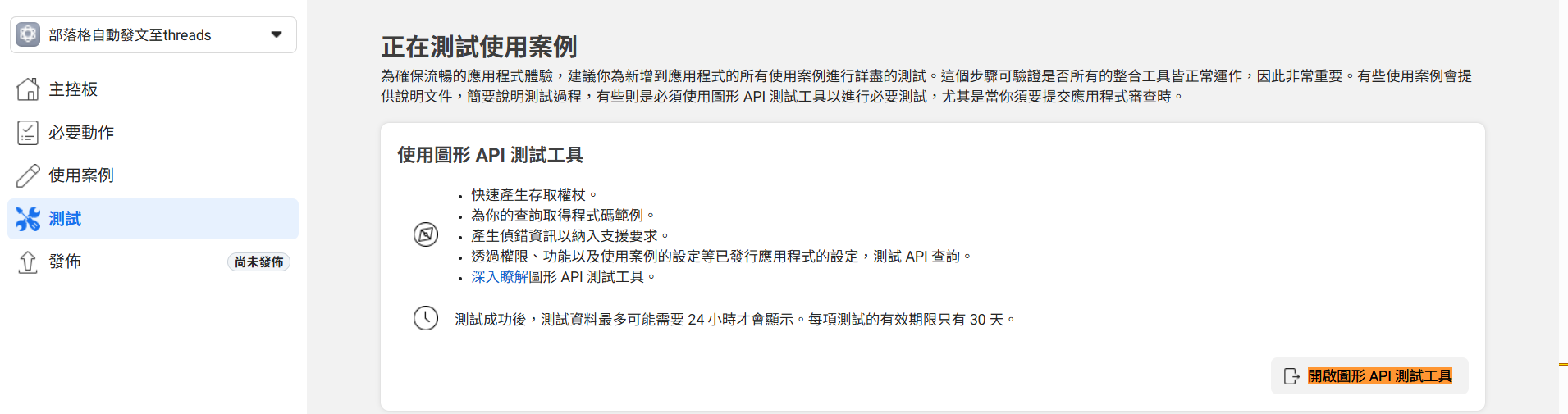 點測試 開啟圖形 API 測試工具